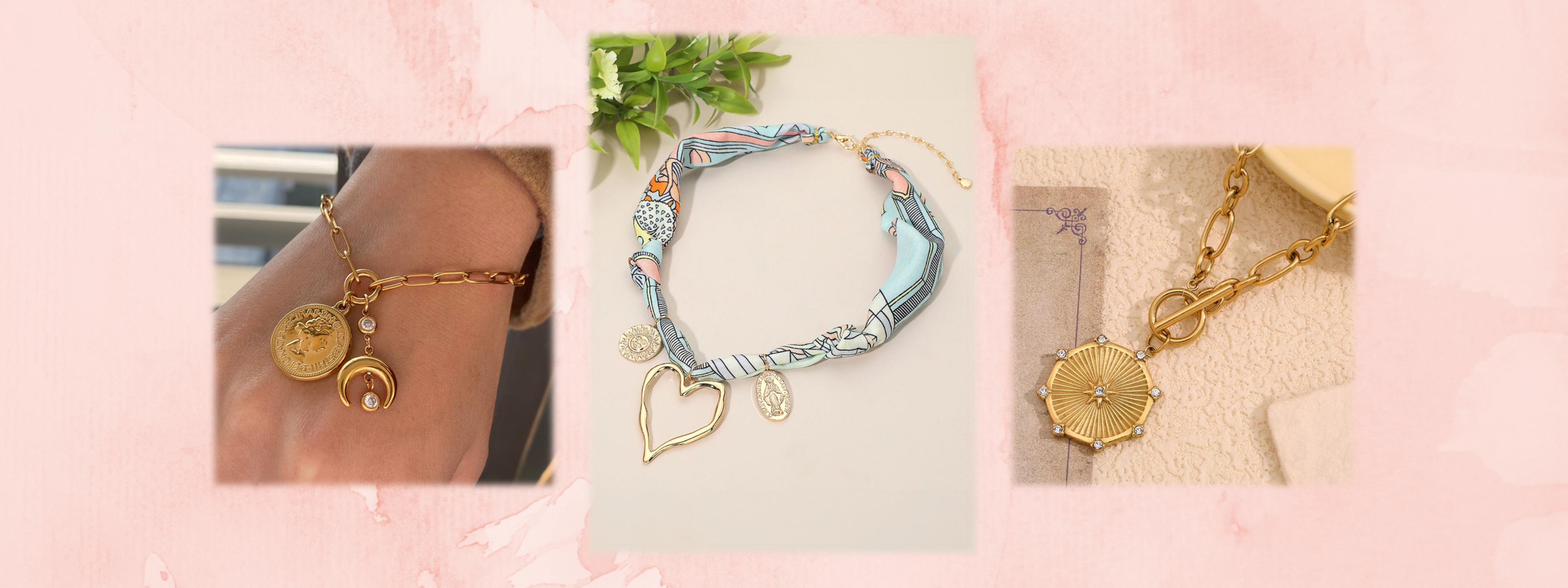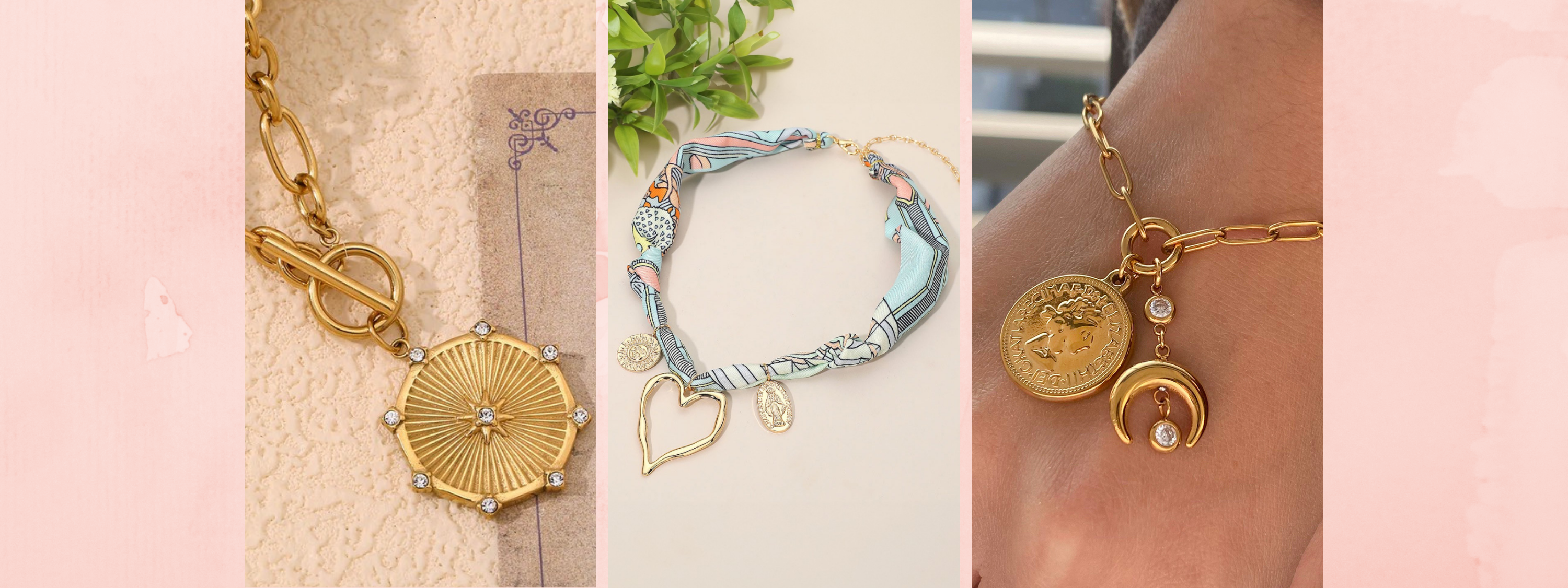 Colorful Fabric Beaded Circle Pendant on Gold Chain