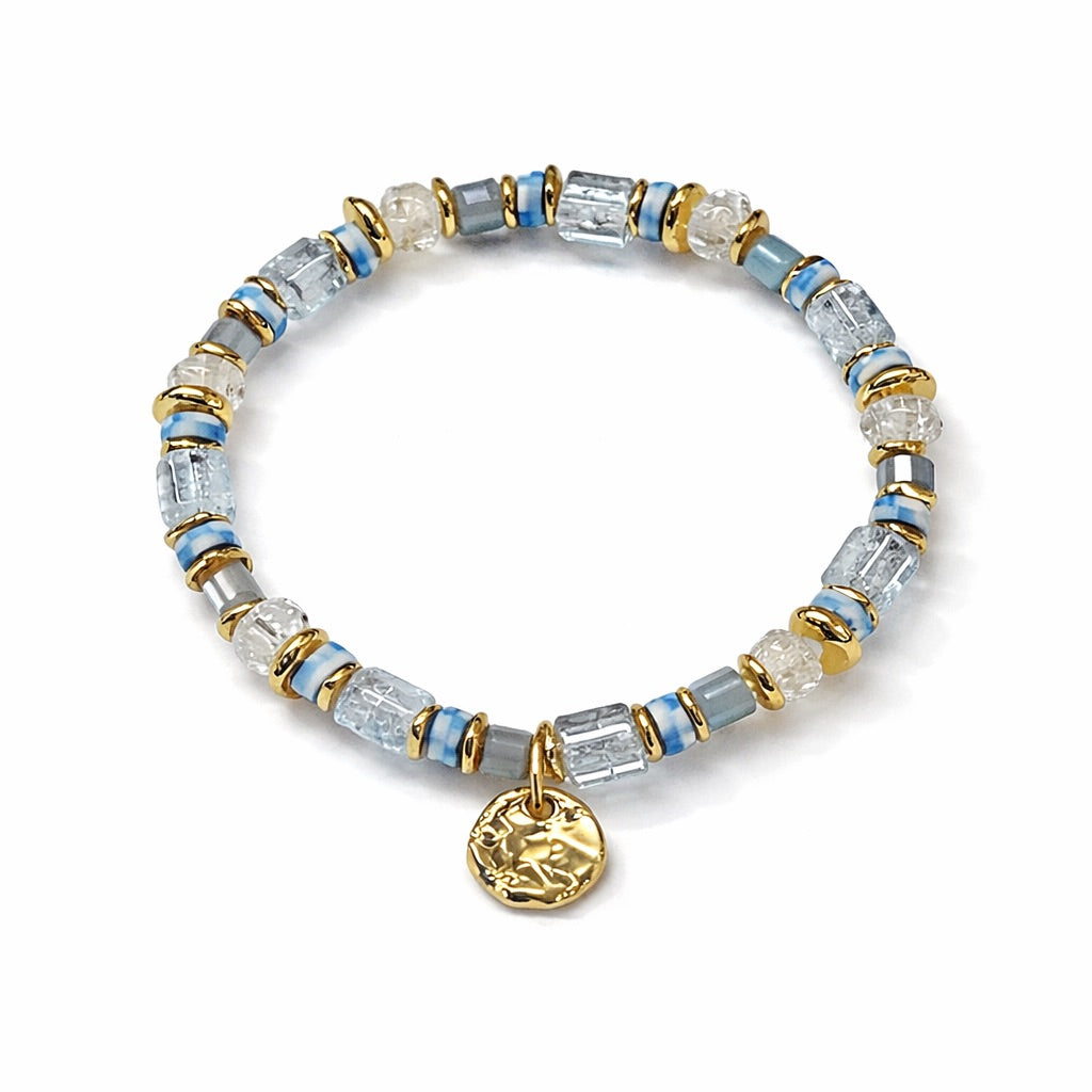 Crystal & Gold Beaded Bracelet with Gold Charm